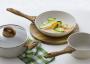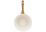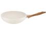 Patelnia wok o oryginalnym, naturalnym wyglądzie. Korpus swoją fakturą przypomina kamień, a rączki imitują drewno.