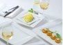 Marmurowa biel porcelany połączona jest z wyrazistym kwadratowym kształtem talerzy.