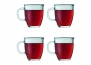 Zestaw 4 kubków  wykonany z bardzo odpornego na wysokie temperatury szkła boro-krzemianowego.