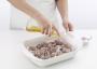 Lekka silikonowa pokrywa jest idealnie dopasowana do naczynia, zapewniając jego szczelność oraz umożliwia łatwe dodawanie składników w połowie pieczenia.